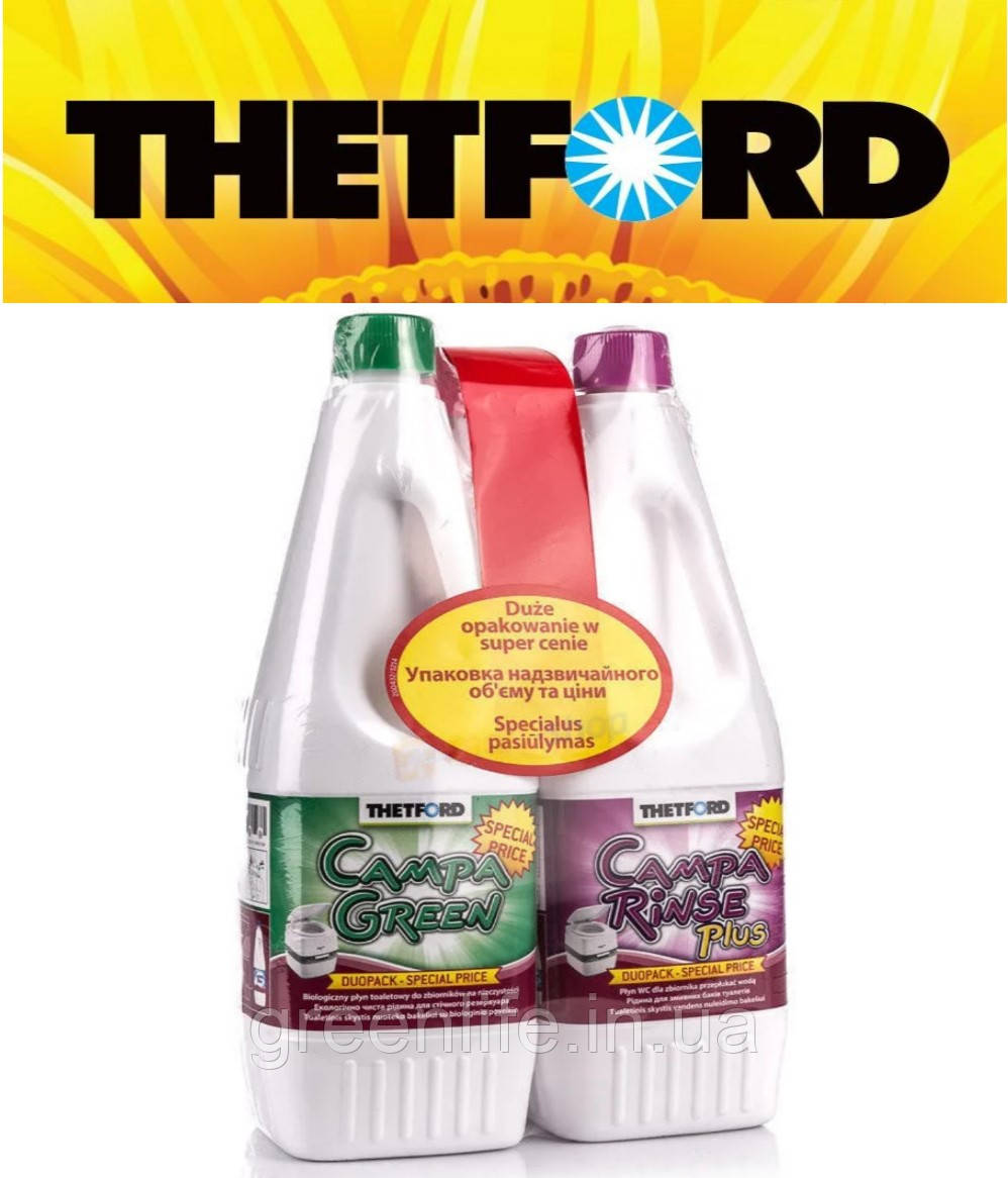 Рідина концентрату ДУОПАК для біотуалетів Thetford Duopack, Campa Green + Campa Rinse Plus, 2x1,5 л, Кампа Грін + Кампа Ренз.